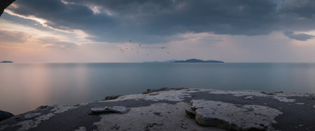 Panoramic view of the sea and sky in the evening.