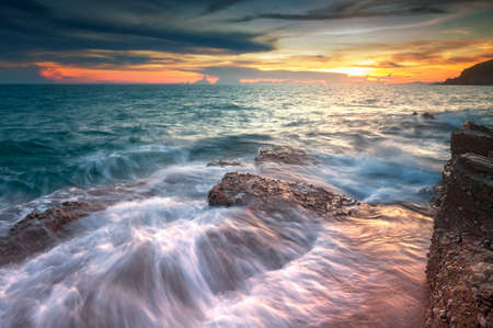 Beautiful seascape at sunset. Nature composition. Long exposure.