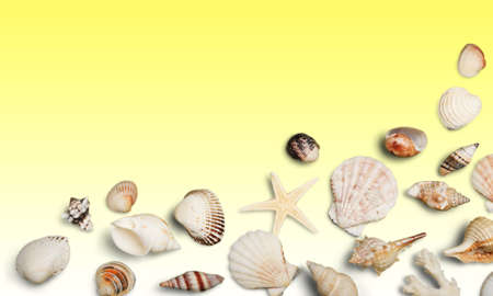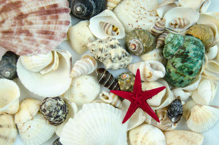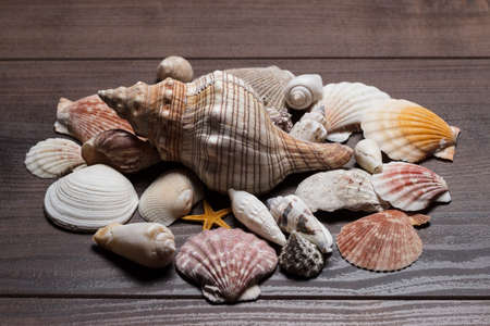 Closeup photo collection of seashells. Amazing background summer vacation concept.