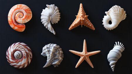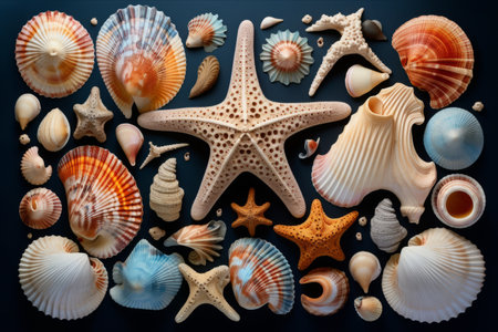 Marine Treasures: A Captivating Collection of Seashells and Starfish in a 3:2 Aspect Ratio