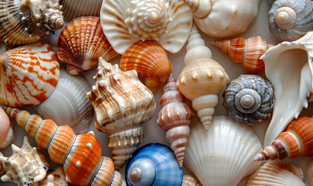 Coastal gems: seashells, delicate remnants of marine life, scattered along beaches as souvenirs of the oceans depth and mystery, beauty capturing the essence of the seaside.