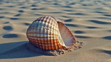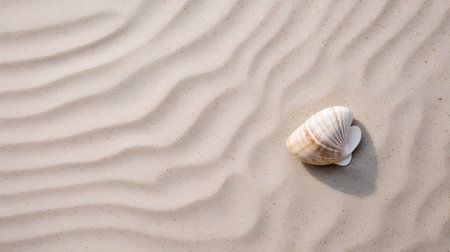 Capture the essence of a perfect beach day with this stunning seashell on a sandy shore. Ideal for travel, wellness, or coastal-themed projects. Evokes a sense of calm and escape.
