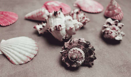 Old weathered conch shell background. Tropical sea conch wallpaper