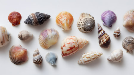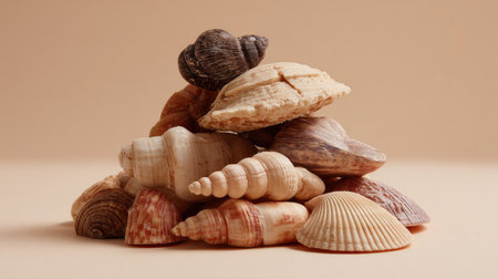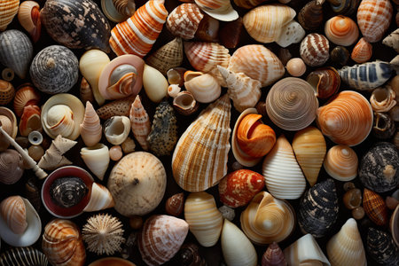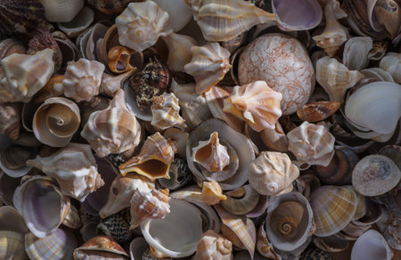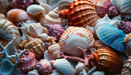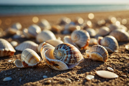 Coastal gems: seashells, delicate remnants of marine life, scattered along beaches as souvenirs of the oceans depth and mystery, beauty capturing the essence of the seaside.