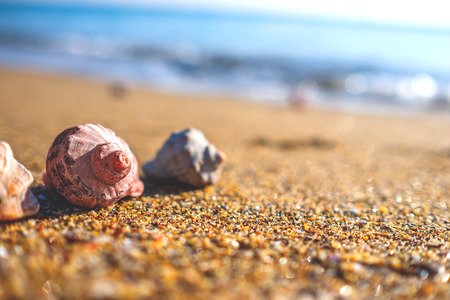 Beach background pebble summer seashell white sand pattern closeup shell texture nature ocean sea
