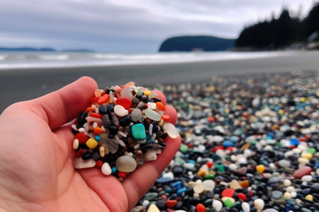 zoomed-in image of microplastics on a beach, created with generative ai