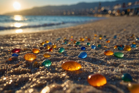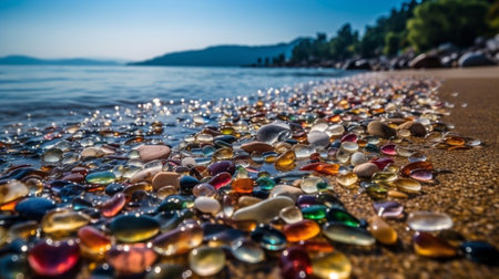 Colorful sea glass beach showcasing natures artistic treasures along the shore