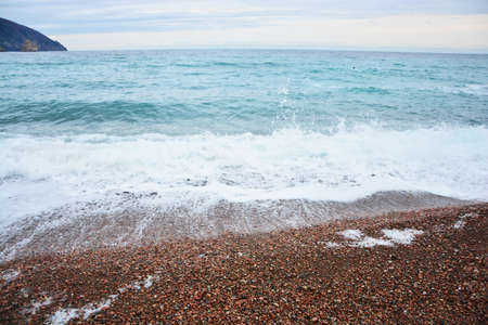 Sea shoreline, wet sand and waves. Vacation at the beach