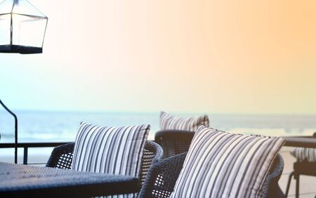 Tables and chairs at outdoor summervrestaurant on the beach