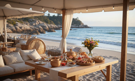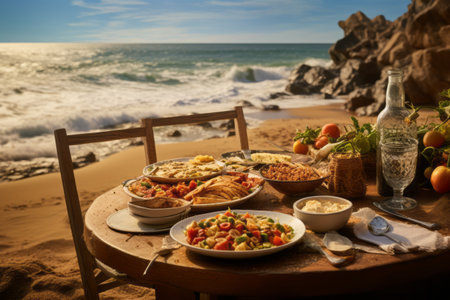 Savouring Coastal Delicacies: Food-Filled Table by the Beach