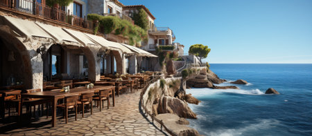Panoramic view of a restaurant on the coast of the sea