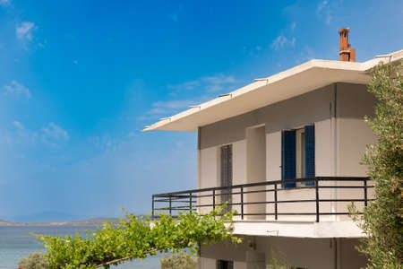 Side view of modern house with sea view.