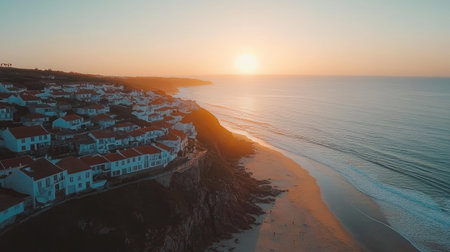 Golden hour at Azenhas do Mar, with its picturesque white houses overlooking the Atlantic Ocean and sandy beach below