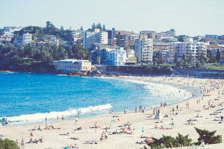 Cape Town, South Africa - March 10, 2021: Elevated view of Muizenberg in False Bay, South Africa