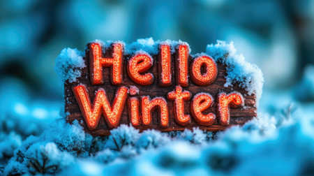 Festive December Landscape with 'Hello Winter' Text