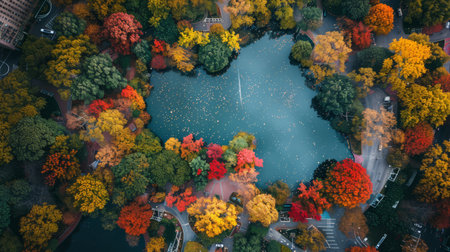 Bird's-eye view of a colorful city park in autumn,