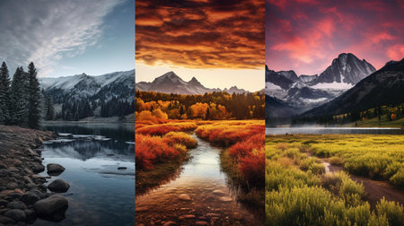 Collage of pictures of autumn alpine landscape with lake and mountains