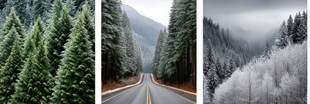 Inspiring Journey through Snowy Trees and Scenic Views of Remote Winter Landscapes on Serene Roads