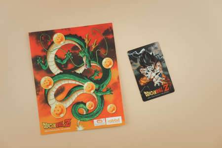 Bangkok, Thailand - November 16, 2020 : The new collection of Rabbit x Dragon Ball Z. New Rabbit card that cartoon lovers can't miss.