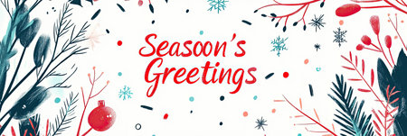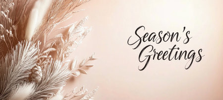 Festive Season's Greetings Illustration with Winter Leaves