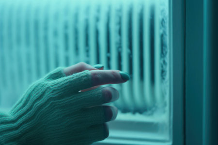 Warm hands resting on a white radiator in a cozy indoor setting during a chilly day