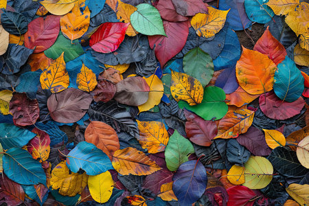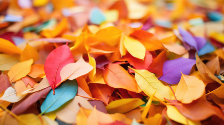 overhead shot of leaves forming a colorful carpet, created with generative ai