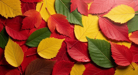 Colorful autumn leaves background. Red, orange, yellow and green leaves.