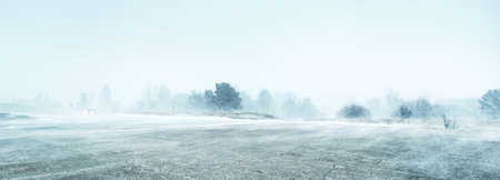 car in winter field and ice background