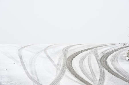 Tire marks on roads, asphalt and rubber scraps from drift tires