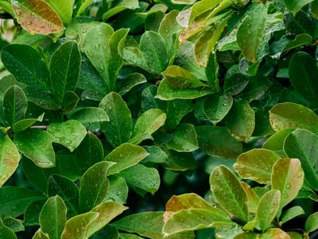 Green leafs and droplet after raining. It is freshness and wet concept.