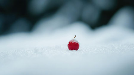 Single Red Apple Winter Snow Nature Photography Image icy cold life food pure fruit white scene