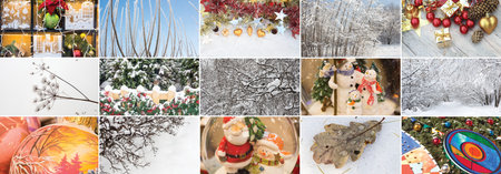 Collage on the theme of Christmas, greeting card, banner, horisontal