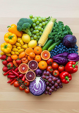 a variety of colorful fruits and vegetables for meal prep, created with generative ai