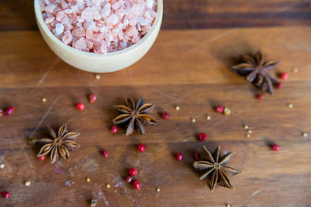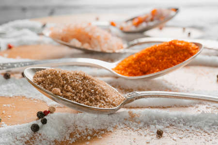 Types of Salt Himalayan, Kosher and Sea Salt Herb Seasoning. Selective focus.