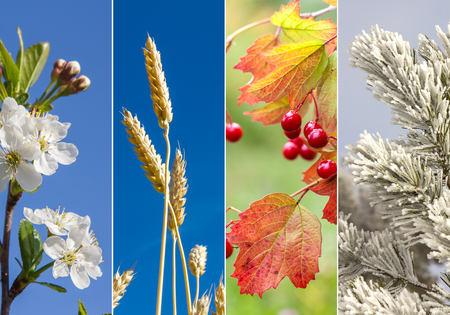 Collage of four seasons - autumn, winter, spring and summer.