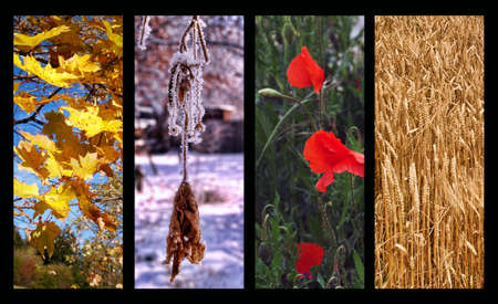 A collage of photographs is the seasons. Selective focus.