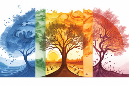 Abstract representation of the four seasons showcasing vibrant colors throughout nature