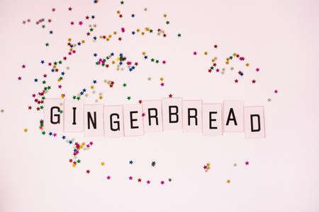 October inscription on a white background. Confectionery sprinkles in the form of multi-colored maple leaves