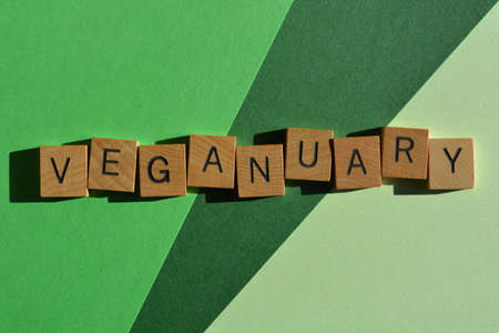 Fresh word made of wooden cubes. The background is yellow and the photo is taken in the studio. Food and nutrition concept.