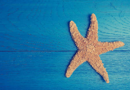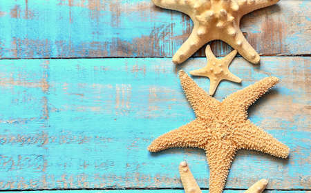 Starfishes on blue planks background