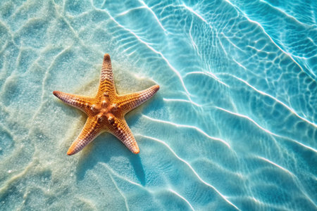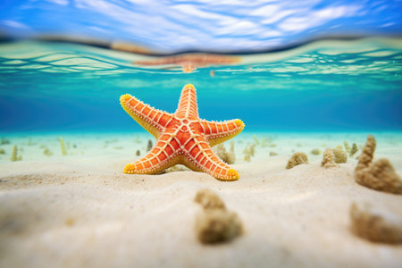 vibrant starfish on sandy bottom with clear water