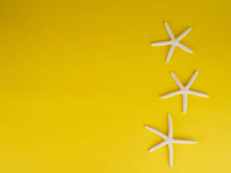 Starfish on yellow background. Enjoy summer holiday concept. Top view