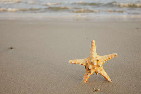 Starfish on the beach with sea background, shallow depth of field