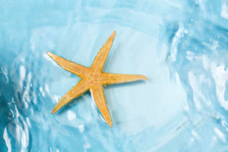 Starfish on the summer beach in sea water. Summer background.