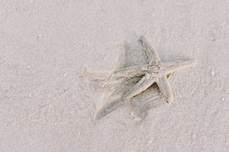 A starfish shell on sand background