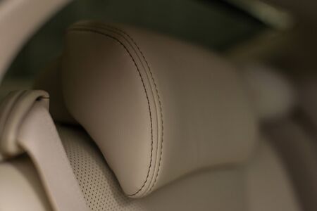 Modern car interior background. Leather headrest.