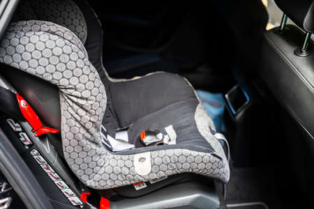 Child safety seat in the back of the car. Baby car seat for safety. Car interior. Car detailing