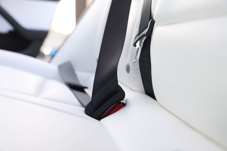 Safety belt and seat inside of modern car, closeup