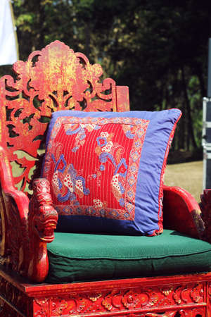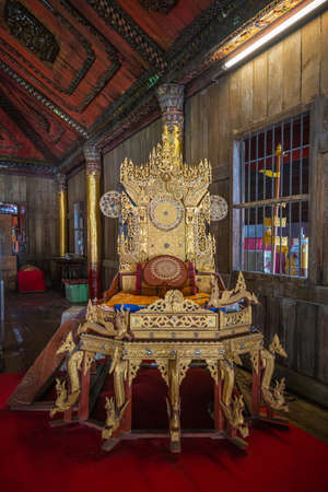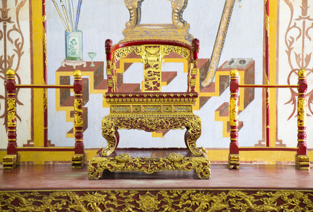 Close up of the sample of King Chair in the Forbidden City of the Imperial Royal Palace of Nguyen dynasty - a World Cultural Heritage site recognized by UNESCO.