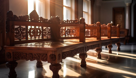 Elegant old fashioned wooden chairs in a row generated by artificial intelligence